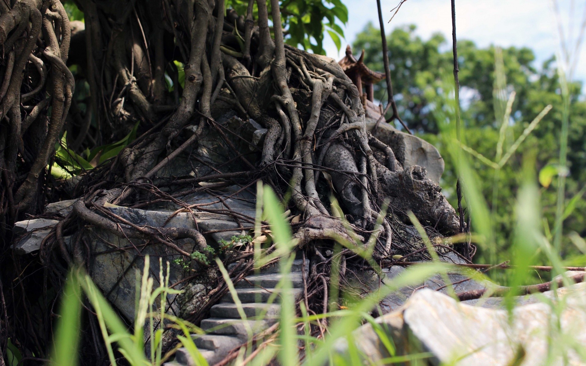 Tre Pupazzi di neve sullo sfondo delle montagne