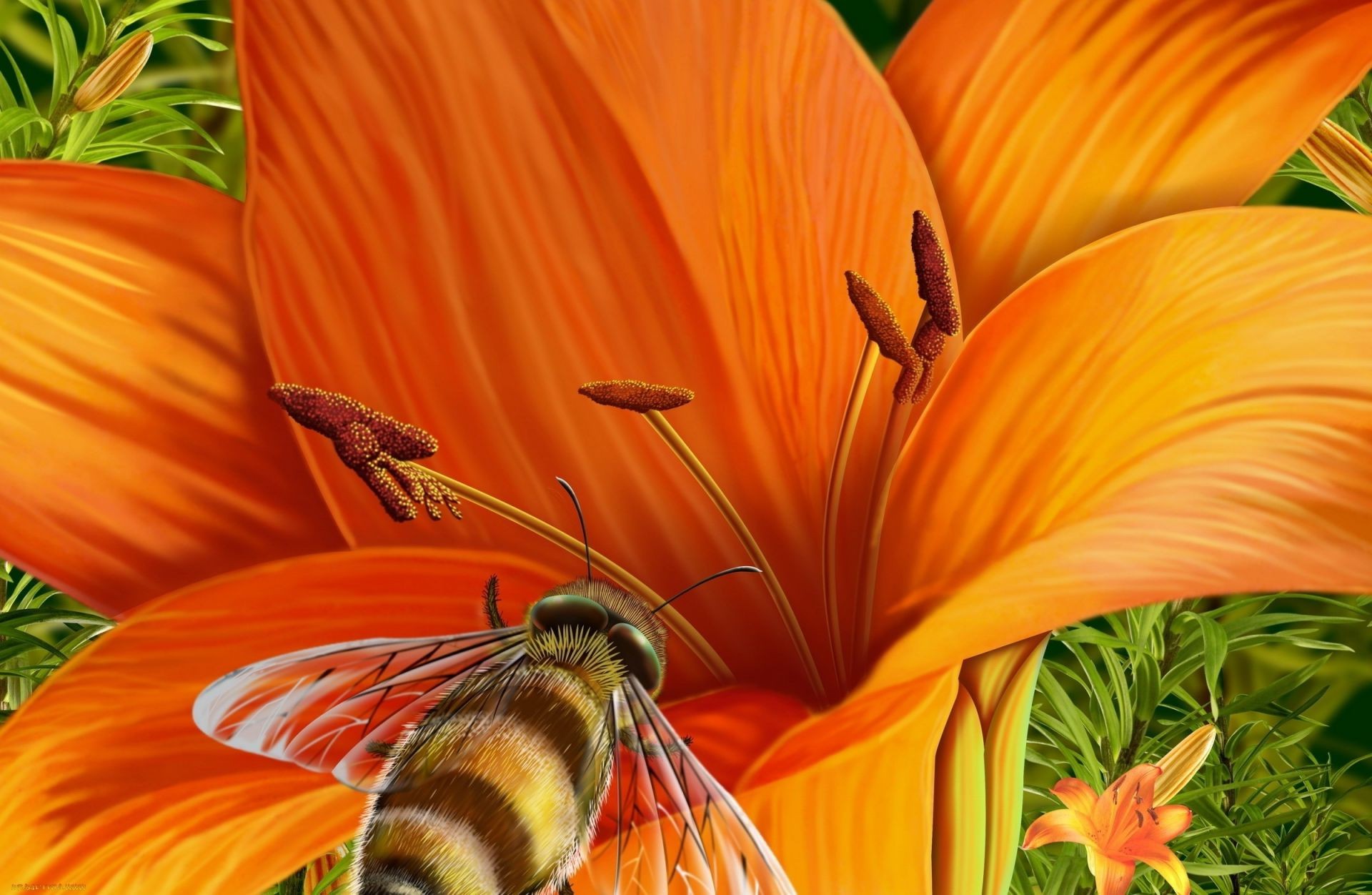 Giglio con ape su una foglia natura