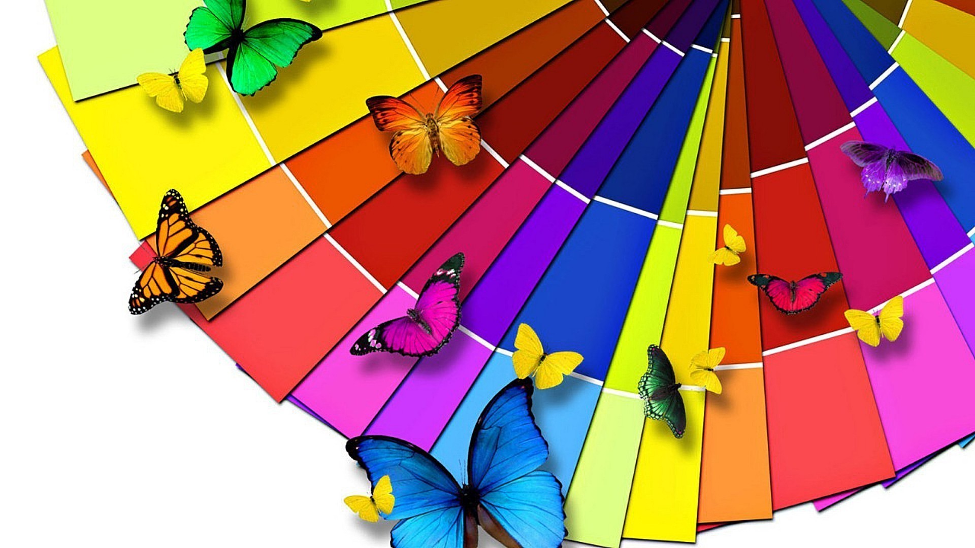 Tavolozza luminosa. farfalle colorate sulla tavolozzaTavolozza luminosa. Farfalle colorate sulla tavolozza
