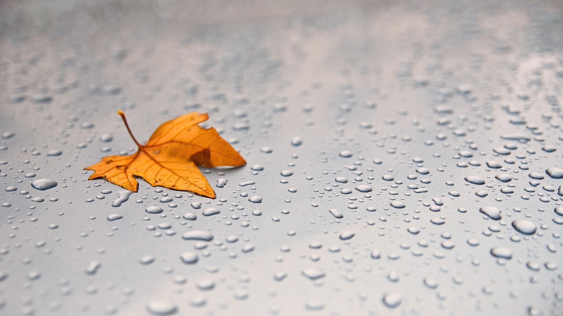 Gocce di rugiada autunnale su una foglia