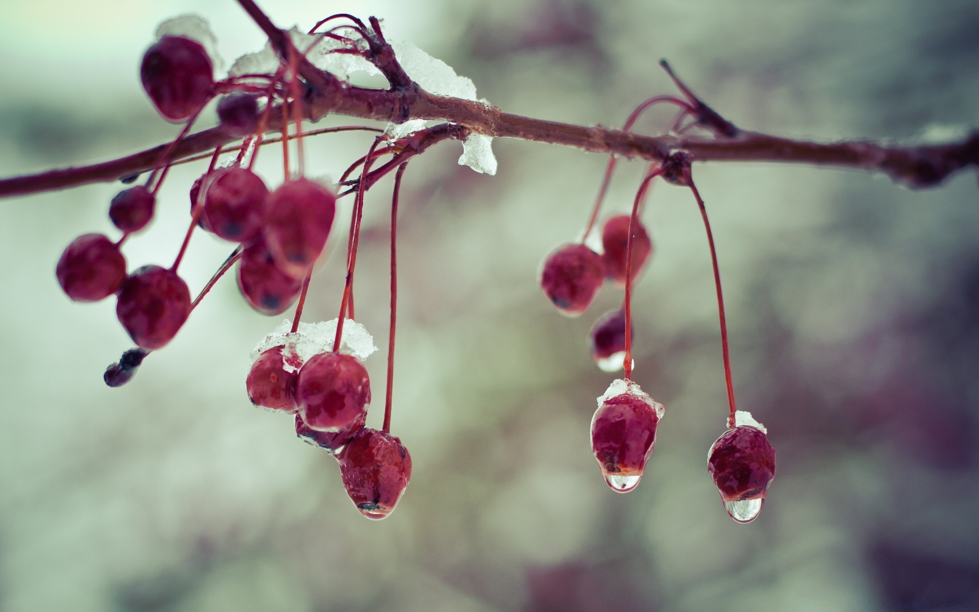 Bacche nella neve sfondo sfocato
