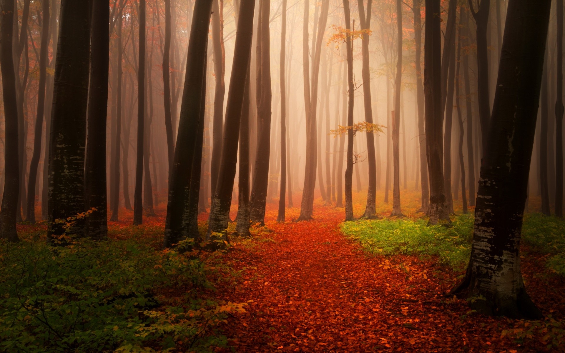 Mattina tranquilla nella foresta d'autunno