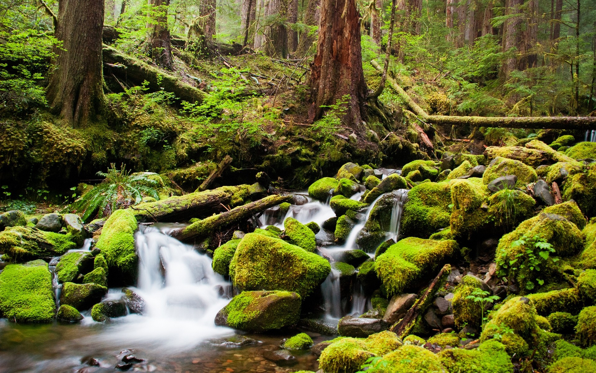Alberi con tronchi dritti e uniformi in una foresta verde