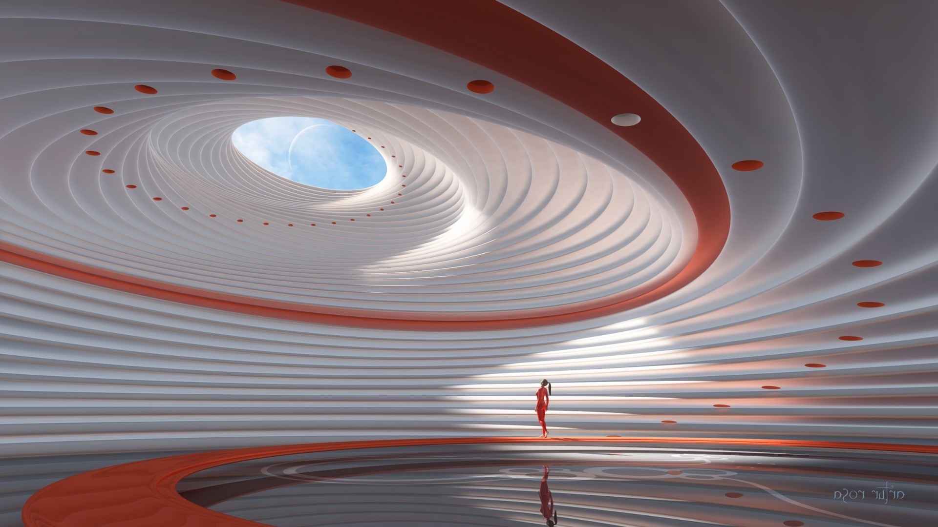 Grafica fantastica della stanza con una finestra nel soffitto attraverso la quale puoi vedere il cielo