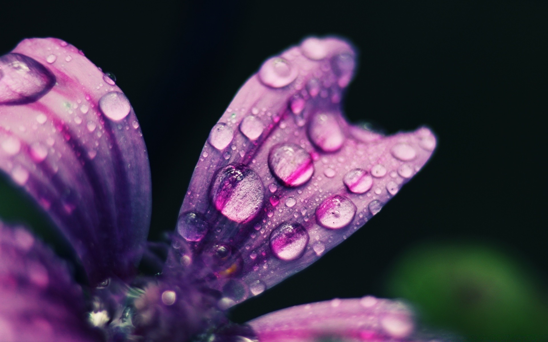 Gocce di rugiada su petali di fiori lilla