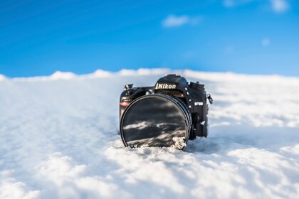 Fotocamera sullo sfondo del cielo nella neve