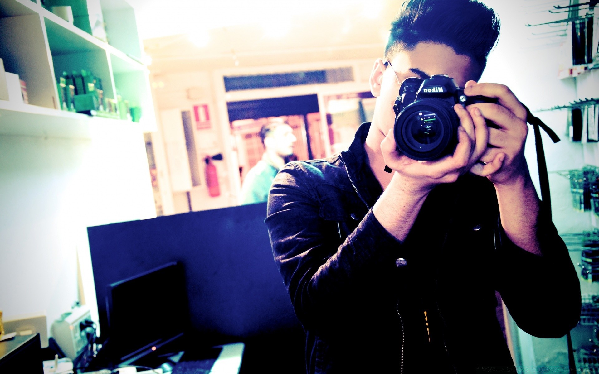 Immagine in bianco e nero della fotocamera con obiettivo grande