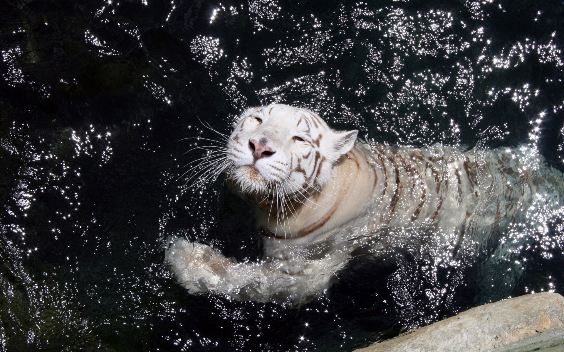 Tigre bianca che nuota in uno specchio d'acqua fresco
