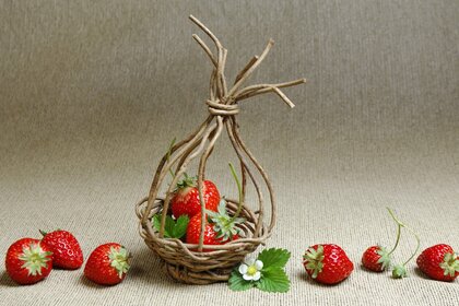 Fragole in un cesto di vimini sul tavolo