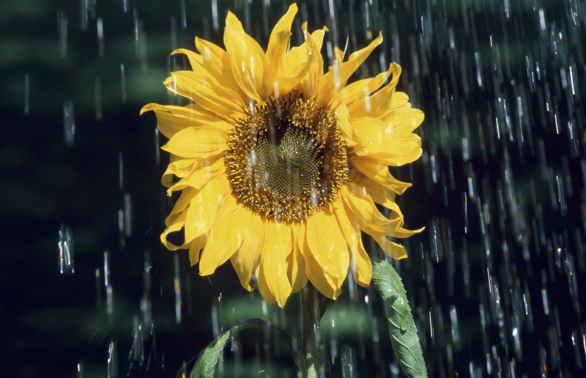 La pioggia estiva innaffia il girasole