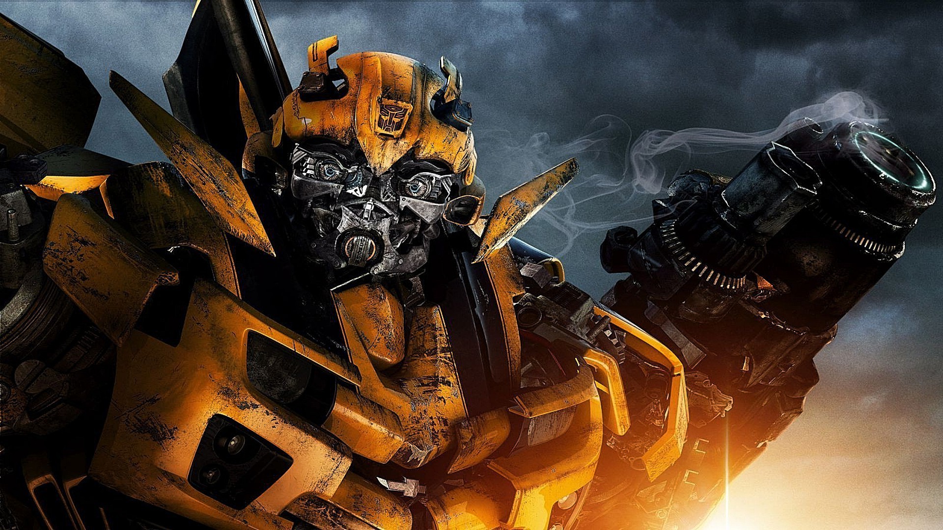 Fantastico film di Bumblebee su uno sfondo di esplosione e fumo