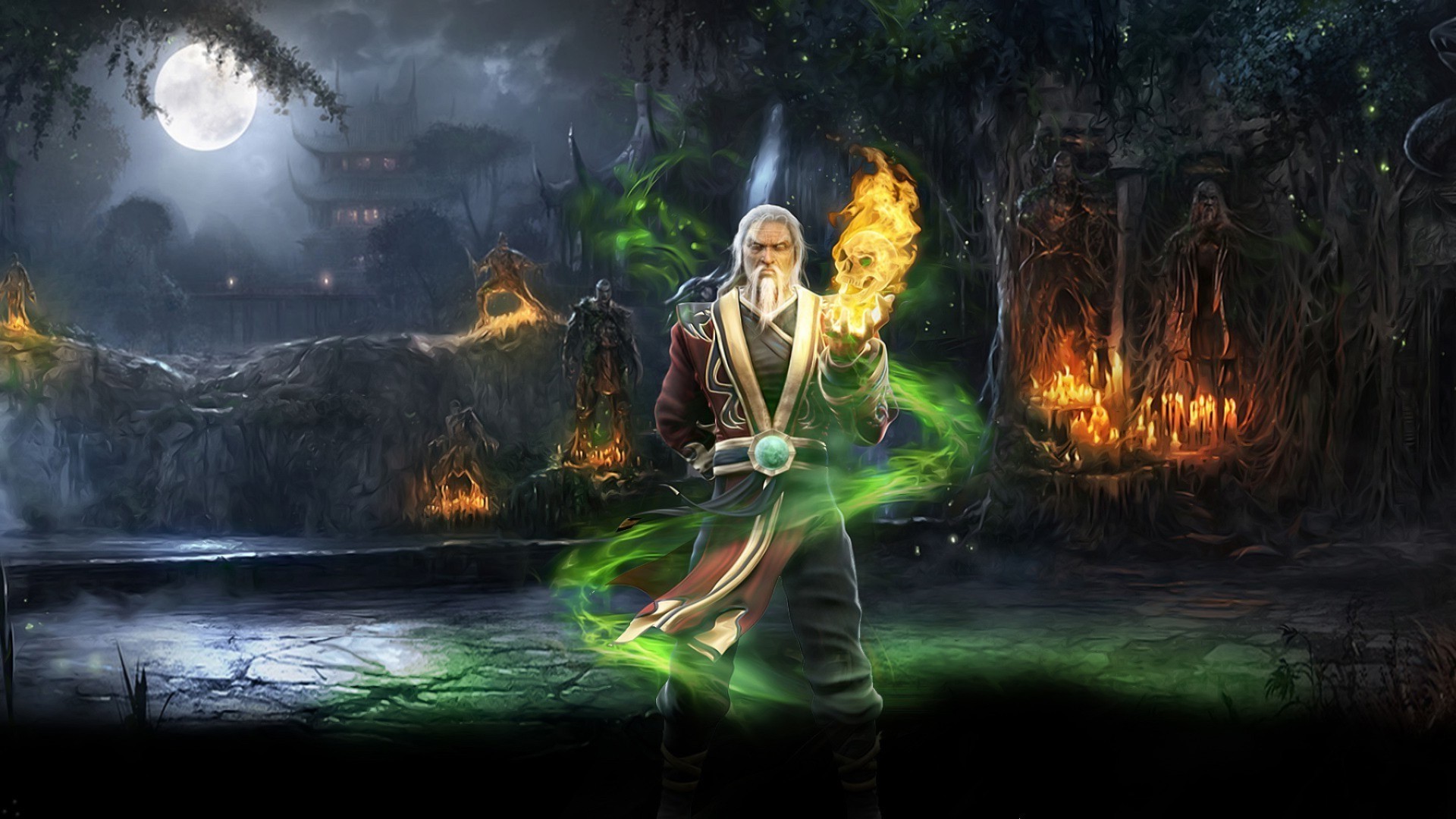Sagoma magica, fiamma, crepuscolo