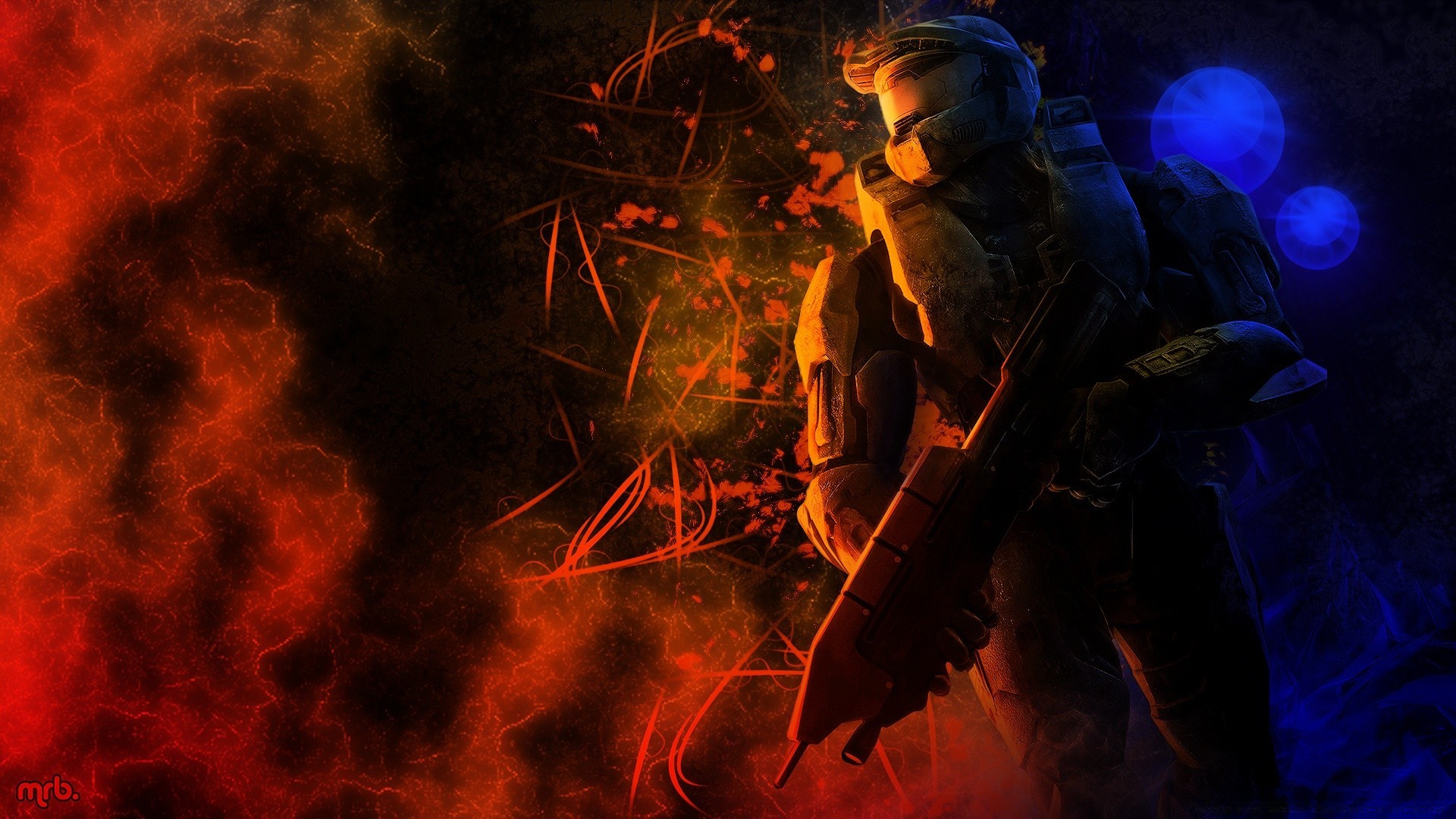 Halo combattente tra il fumo telaio