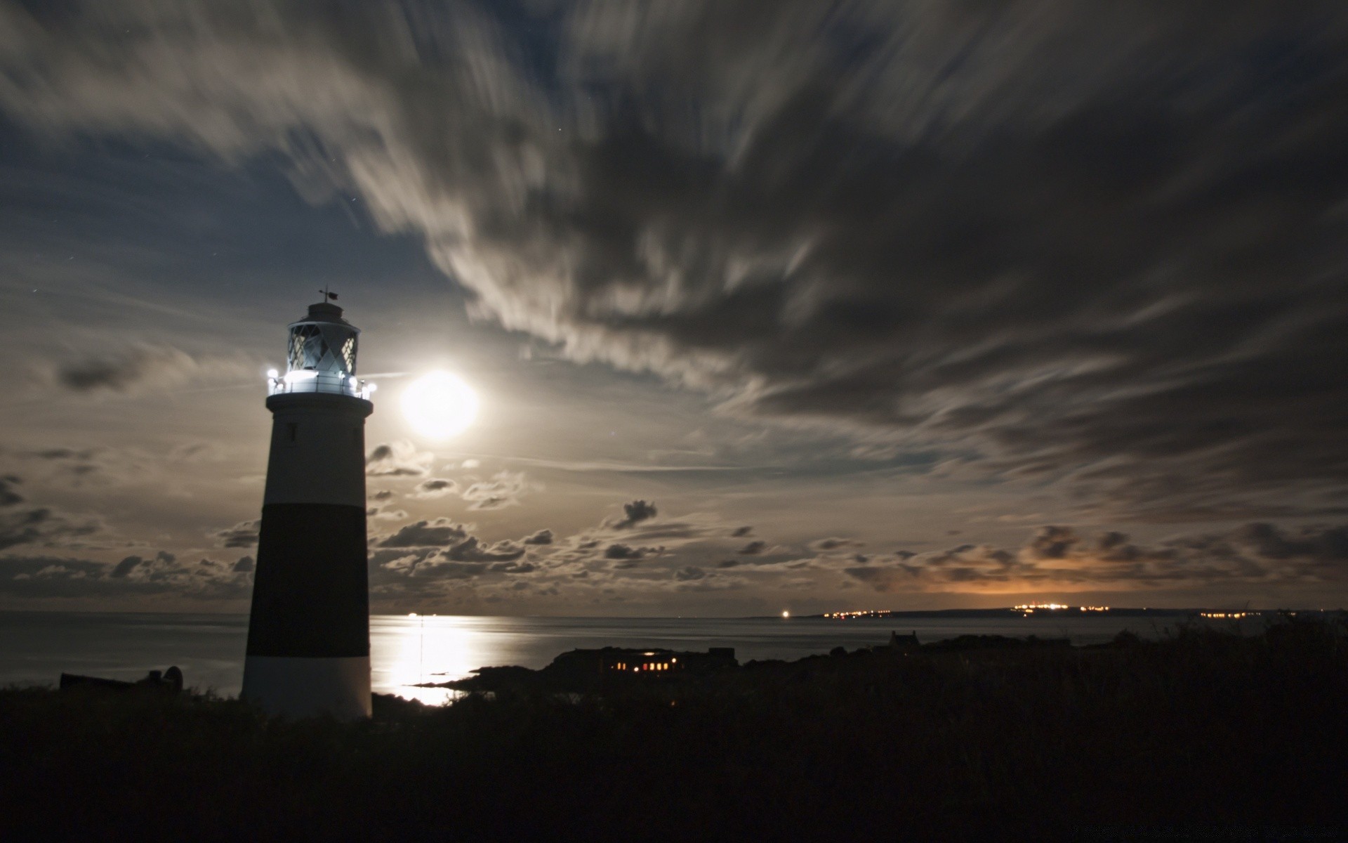 E solo un faro illumina la strada attraverso l'acquaE solo un faro illumina la strada attraverso l'acqua