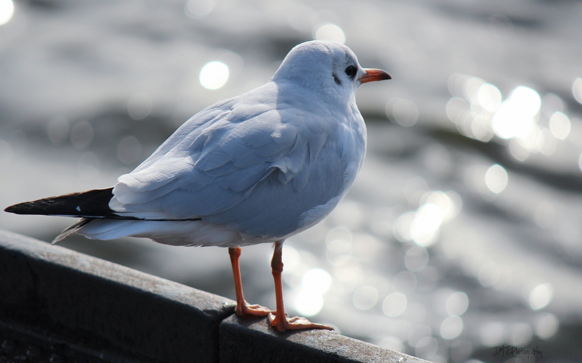Il gabbiano bianco guarda l'acqua