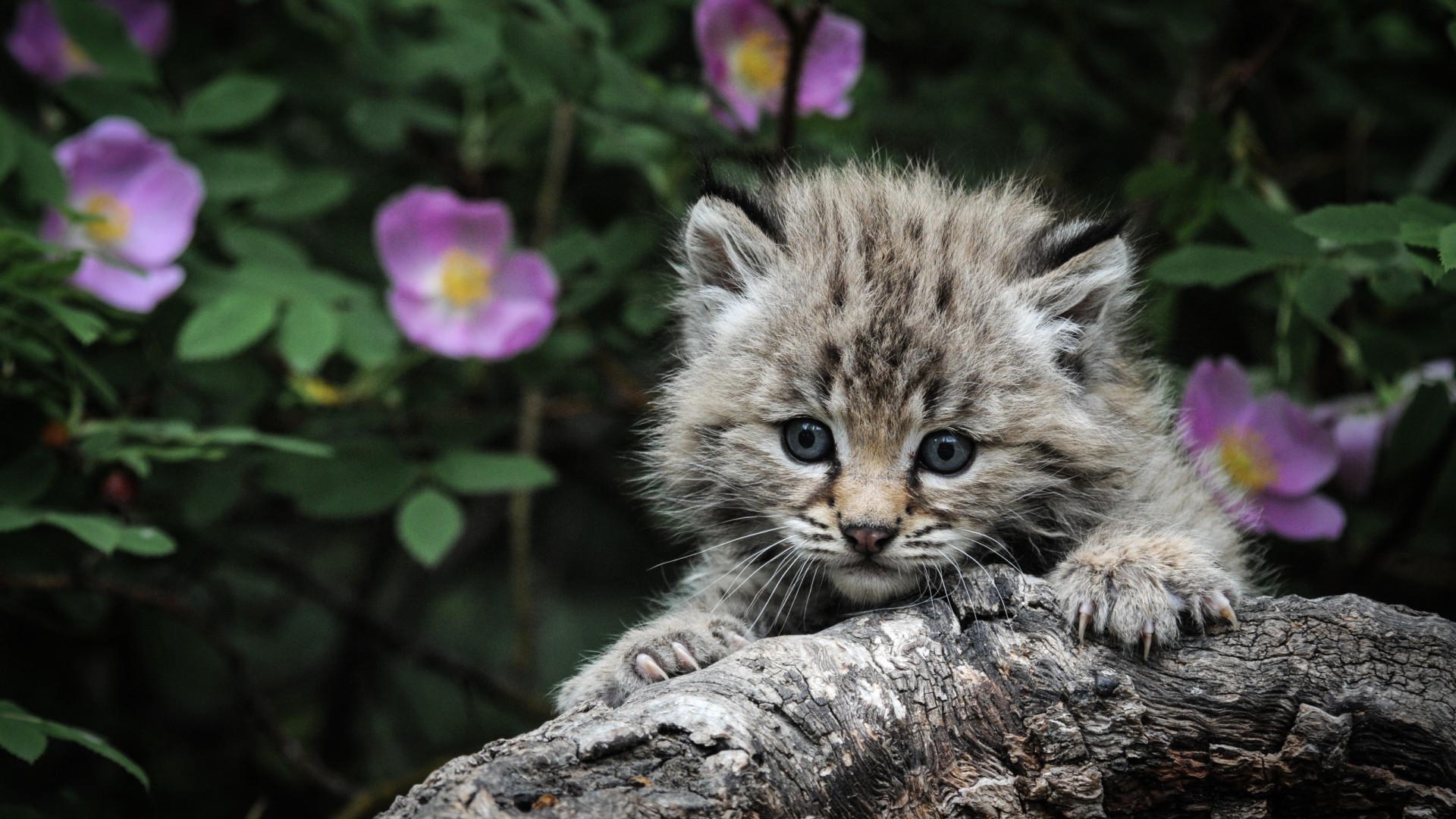 Gattino sulle zampe posteriori gioca sul pavimento con un giocattolo