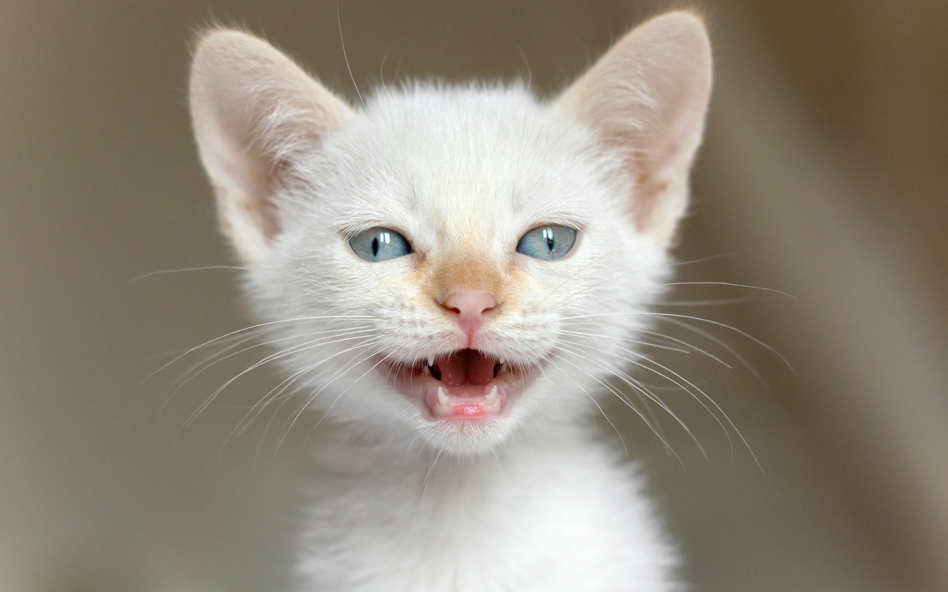 Bianco sottile gattino ha aperto la bocca