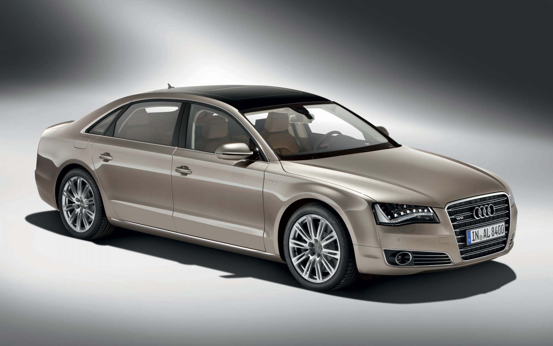 Audi beige su sfondo grigio