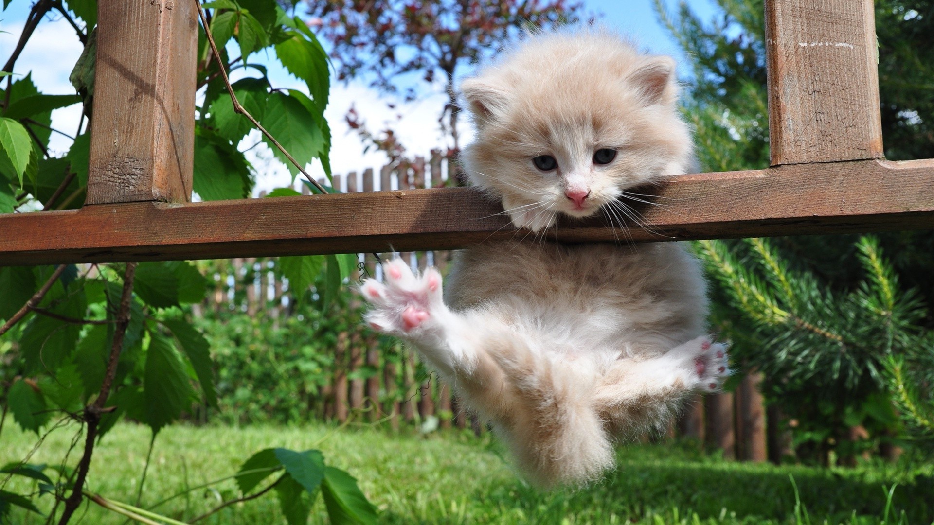 Un gattino carino si arrampica sul recinto. Bellissimi gattini