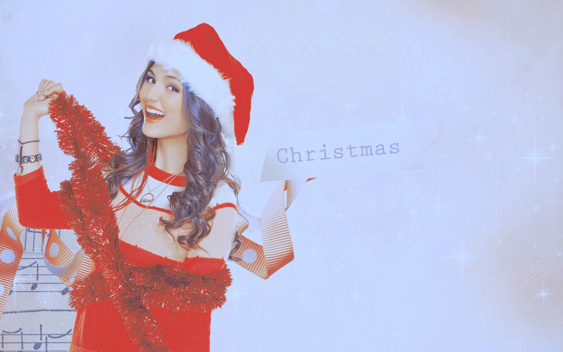 Cartolina a tema natalizio. Albero di Natale vestito con palline rosse