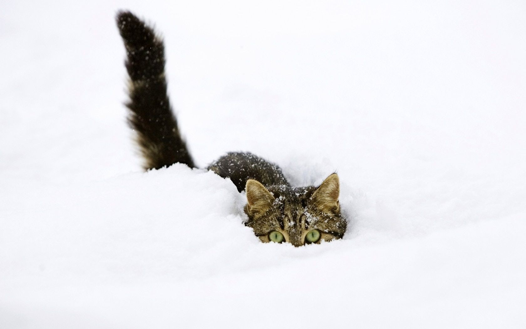 Gatto cacciatore nascosto in un cumulo di neve