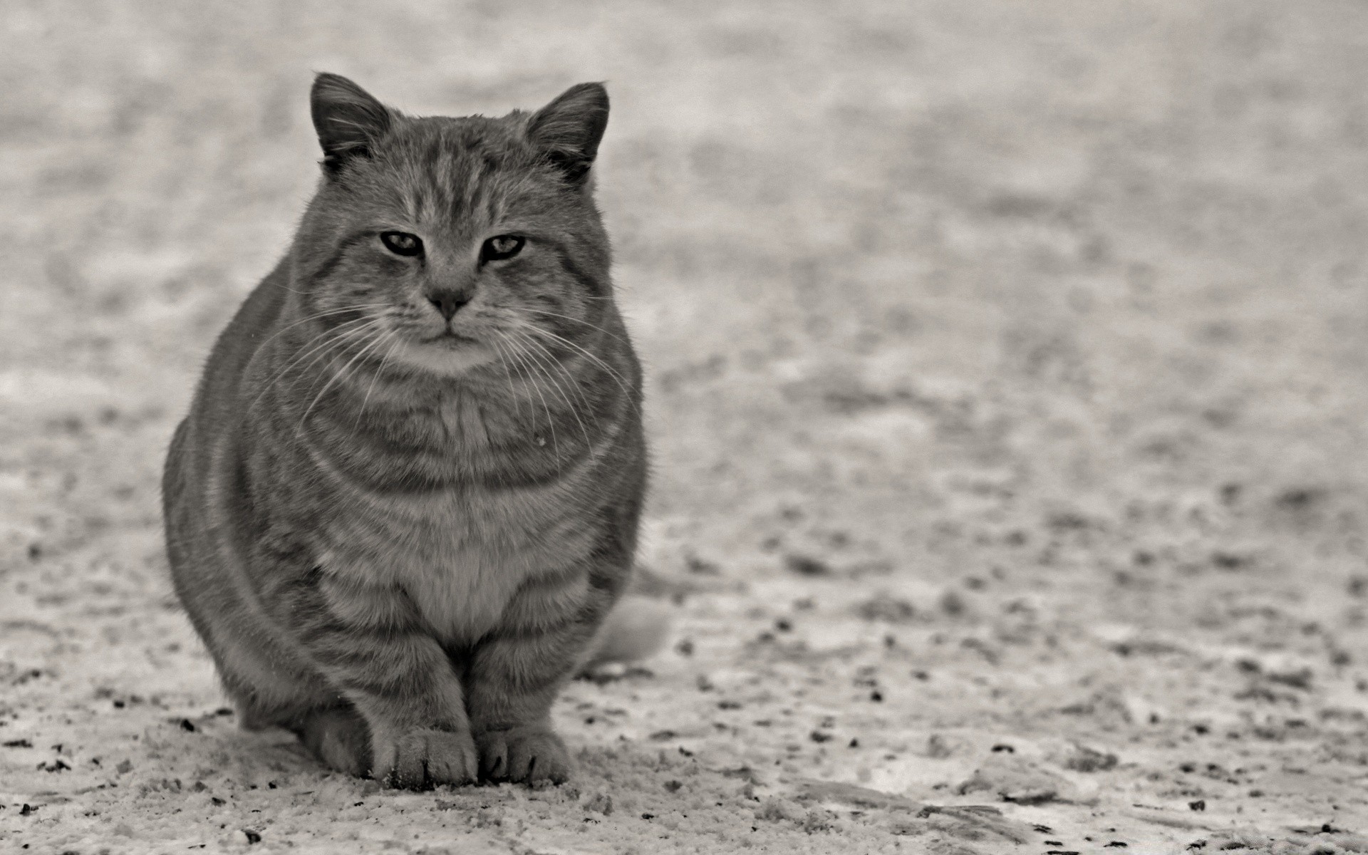 Spaventa il gatto grigio sulla sabbia
