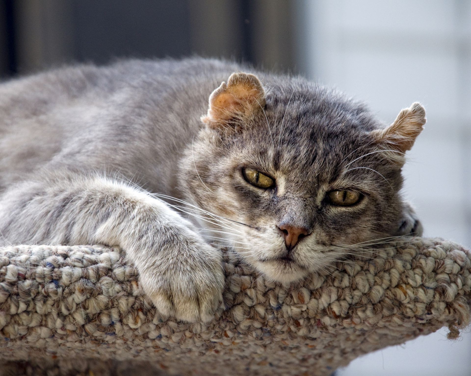 Carino bianco con macchie rosse gatto sdraiato per rilassarsiCarino bianco con macchie rosse gatto sdraiato per rilassarsi