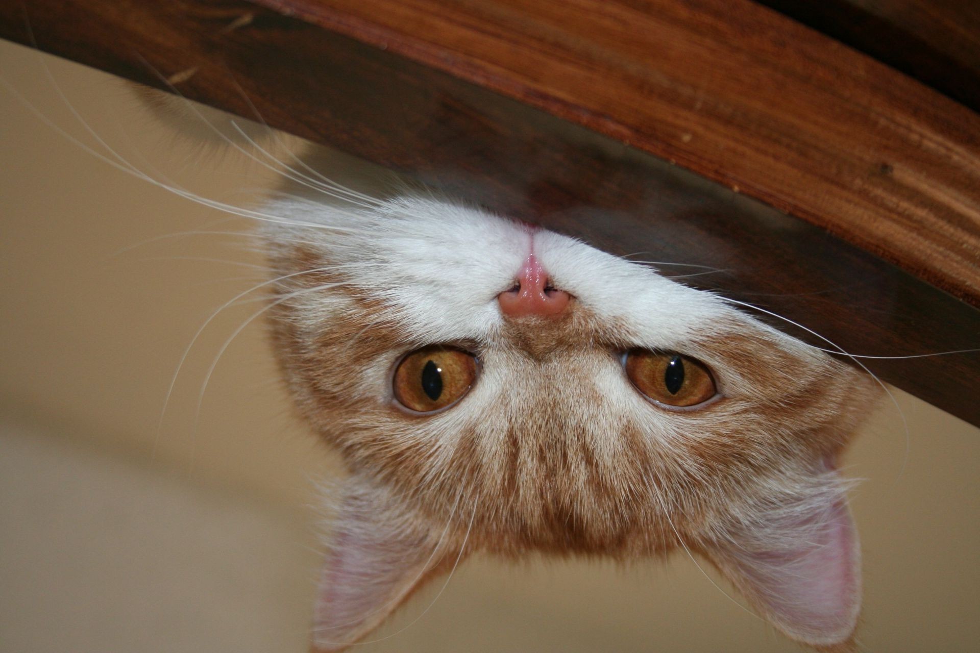 Gatto dai Capelli rossi fa capolino da dietro il tavolo