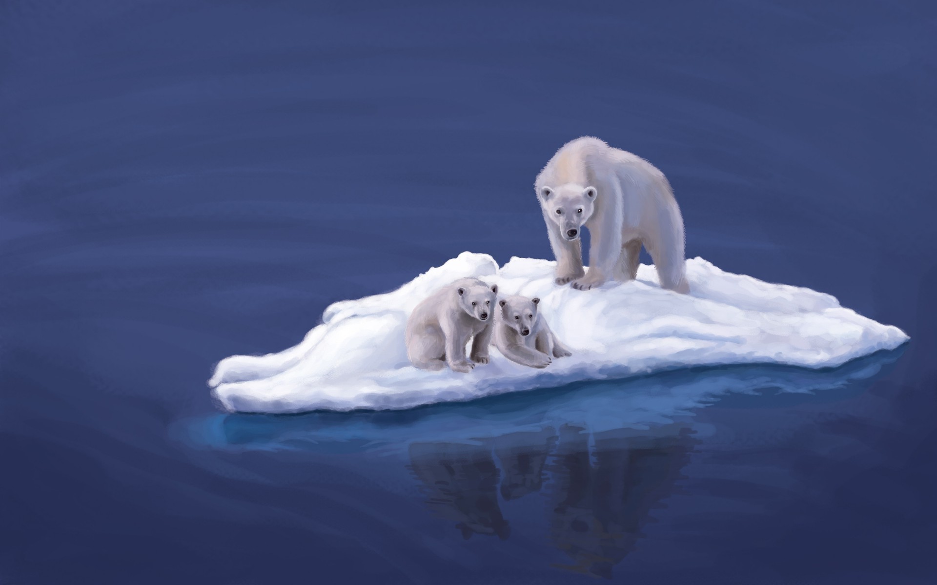 Gli orsi polari nuotano su un lastrone di ghiaccioGli orsi polari nuotano su un lastrone di ghiaccio