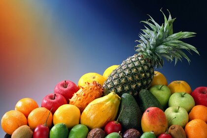 Montagna di frutta su sfondo colorato