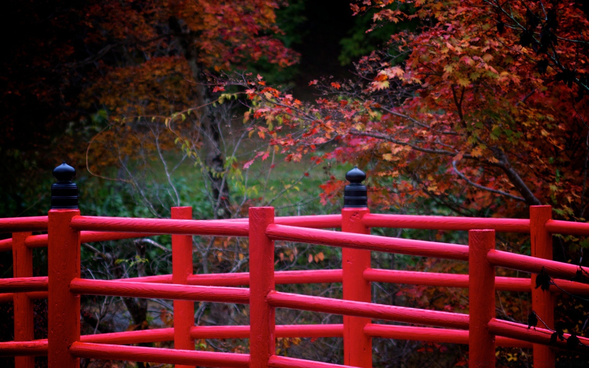 La recinzione rossa completa perfettamente l'atmosfera autunnaleLa recinzione rossa completa perfettamente l'atmosfera autunnale