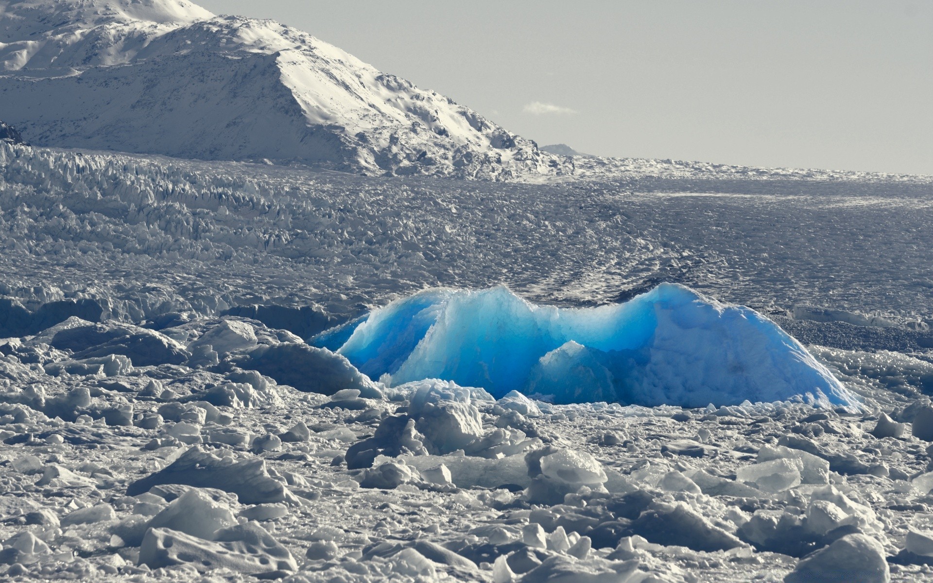 Banchi di ghiaccio innevati sullo sfondo di montagne innevate