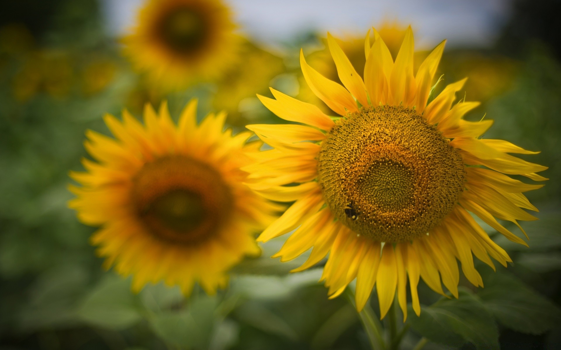 Fiore giallo. Fogliame. Sfondo sfocato scuro