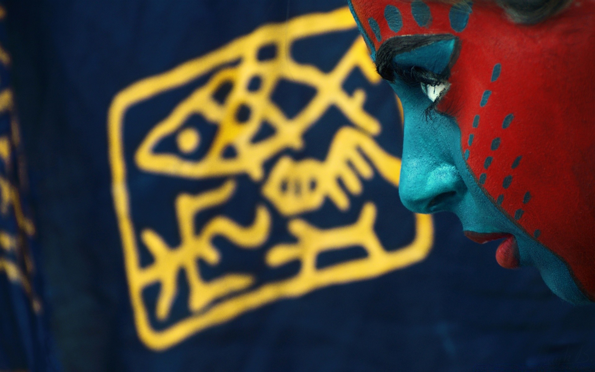 Ragazza con il viso dipinto su sfondo giallo simbolo