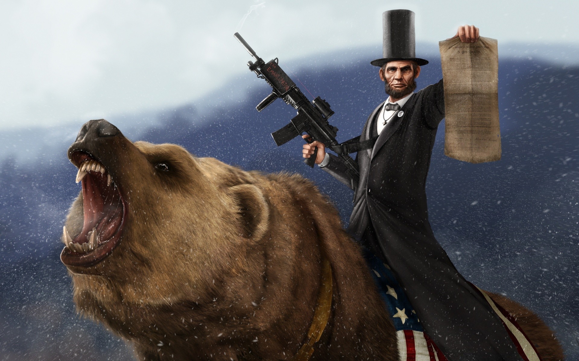 Il presidente degli Stati Uniti Lincoln sull'orso