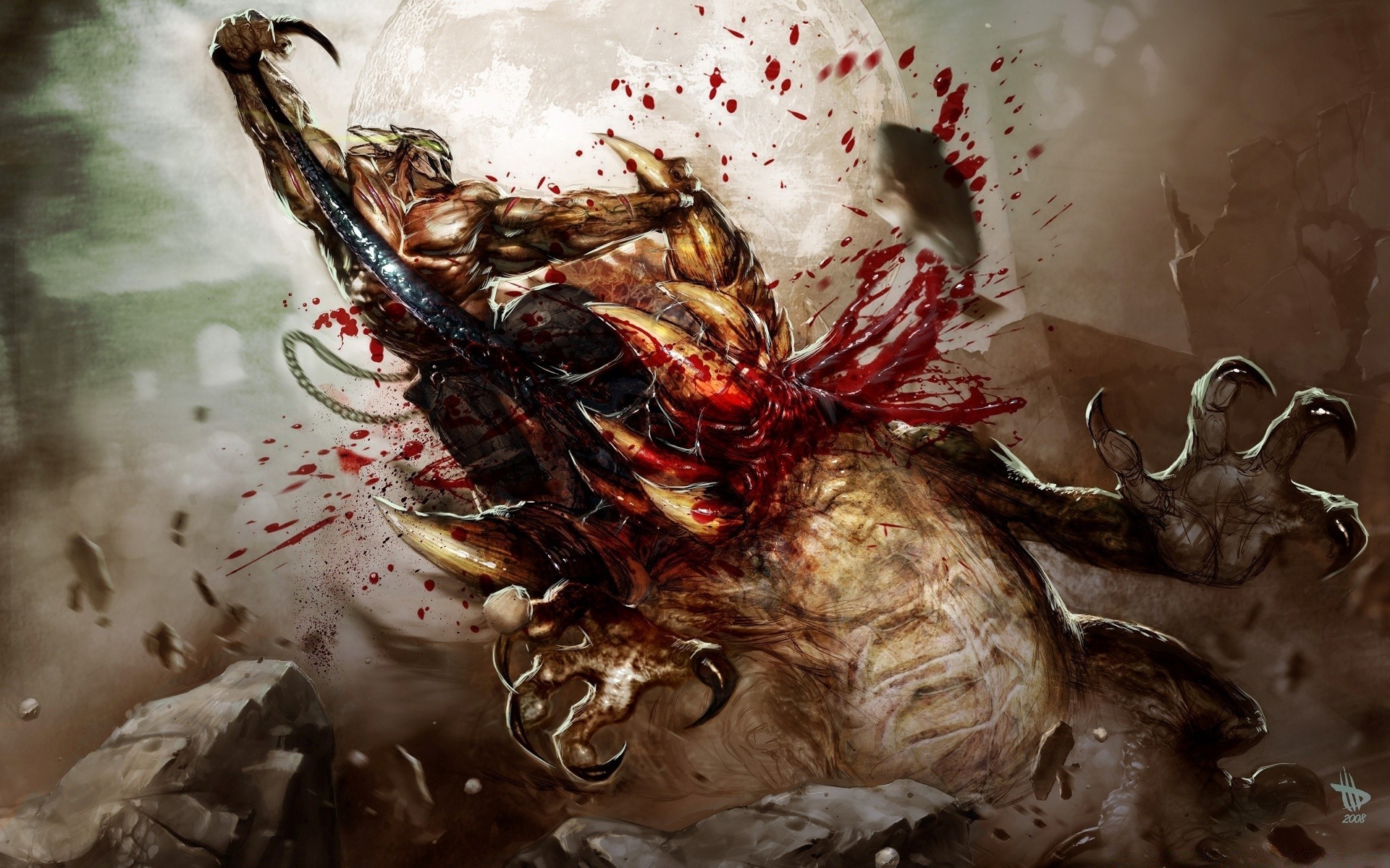 Personaggio dei cartoni animati nel sangue su sfondo grigio