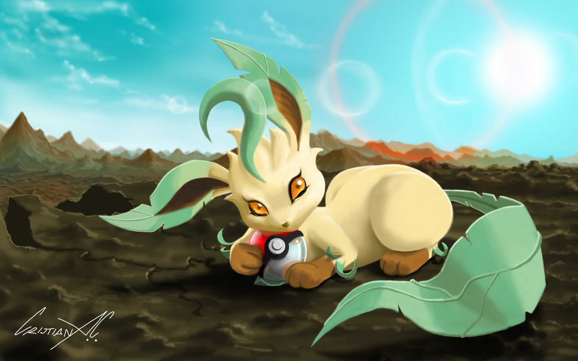 Illustrazione di Pokemon sulle rocce con cielo sereno