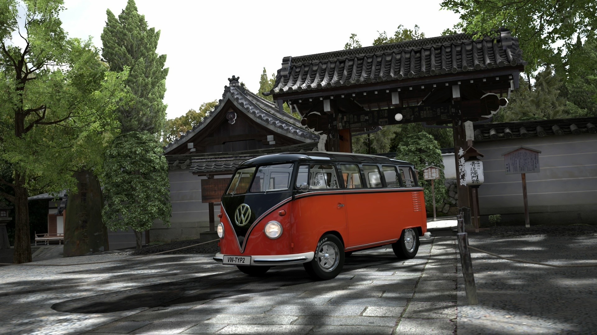 Auto retrò parcheggiata fuori dal bar nel gioco per computer gran turismo