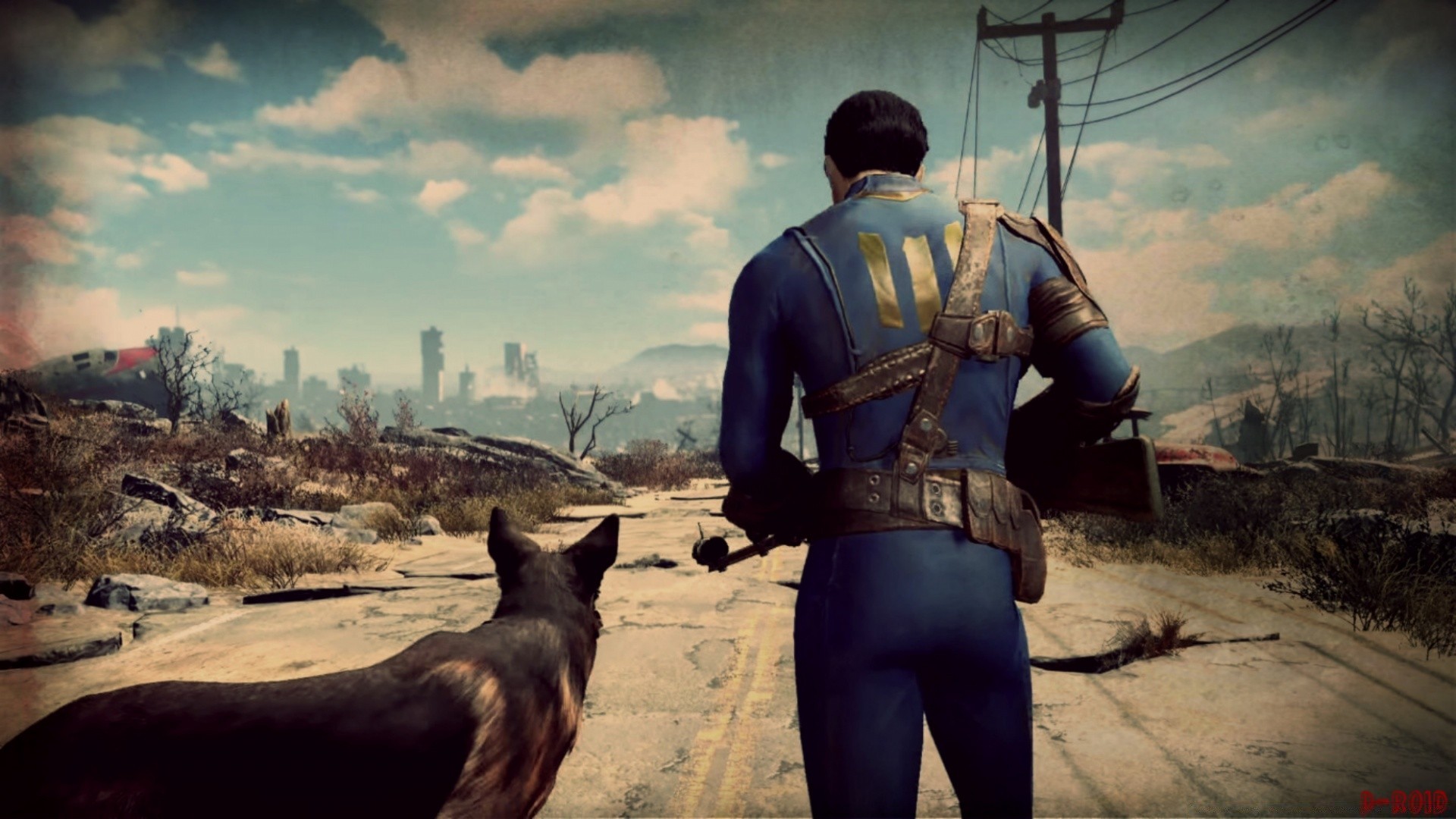 Personaggio del gioco con fiamme sullo sfondo della cittàPersonaggio del gioco con fiamme sullo sfondo della città