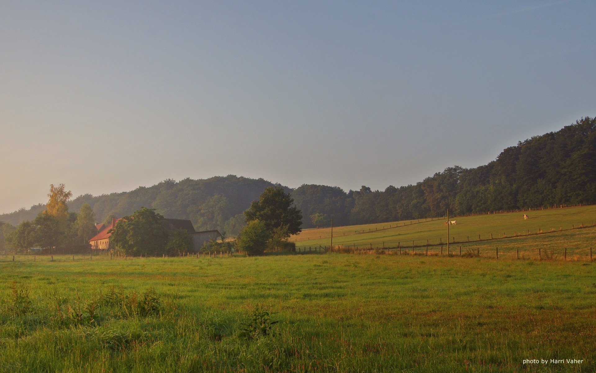 Casa rustica nel verde degli alberi all'alba
