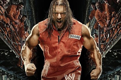 Un uomo in abiti da prigione va a combattere