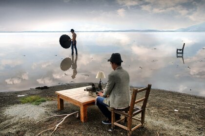 Tavolo da uomo vicino al mare