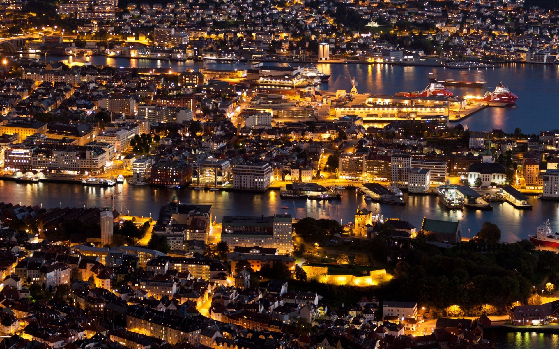 Paesaggio di montagne densamente popolato da alberi intorno acqua