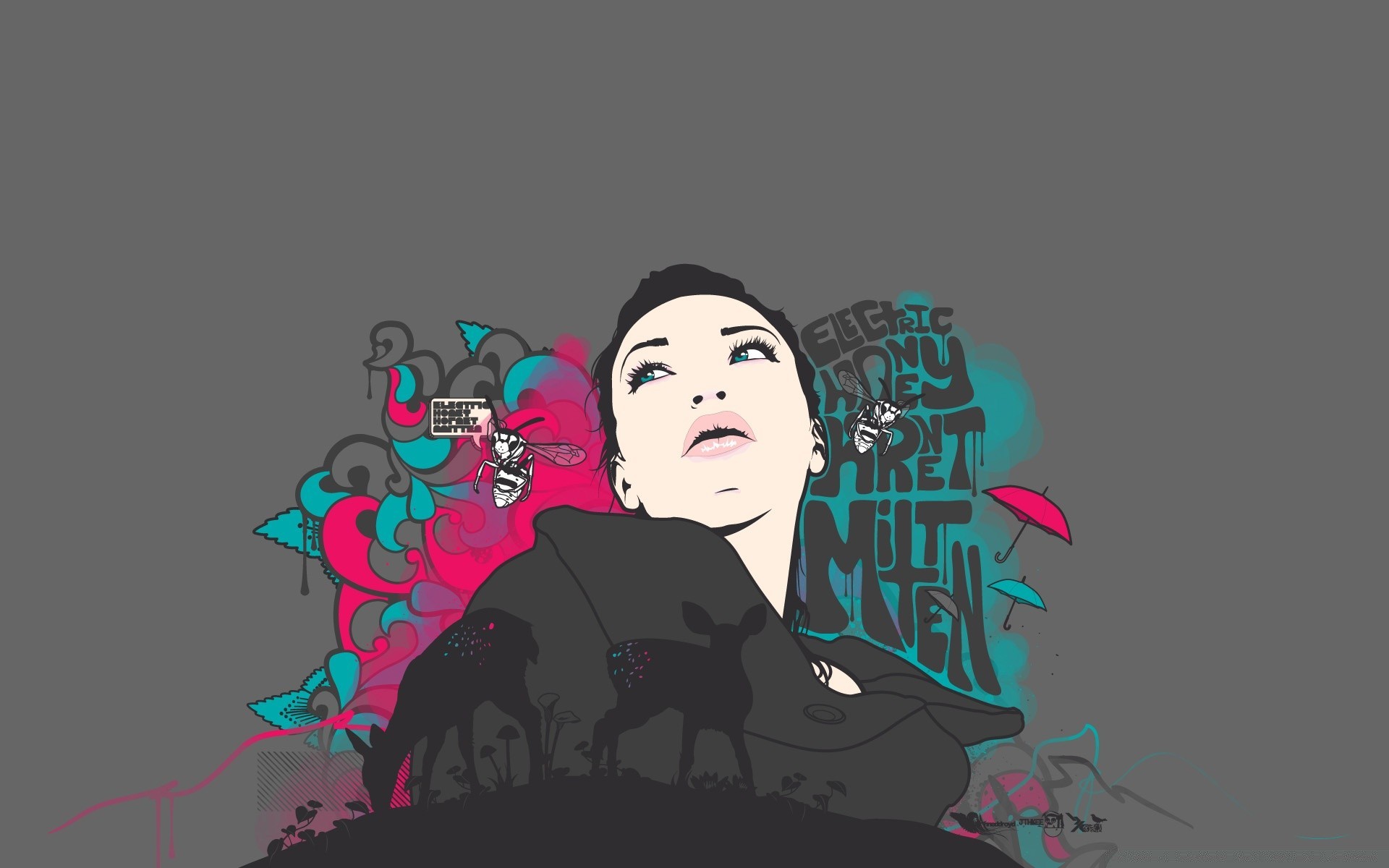 Ragazza grafica vettoriale su sfondo grigio con astrazioni