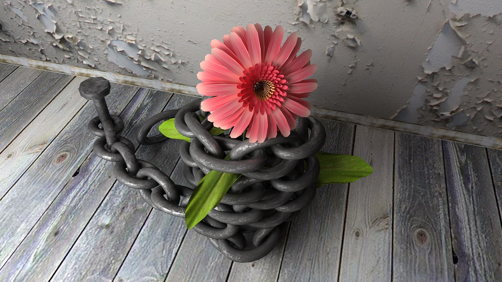 Fiore rosso avvolto con catena