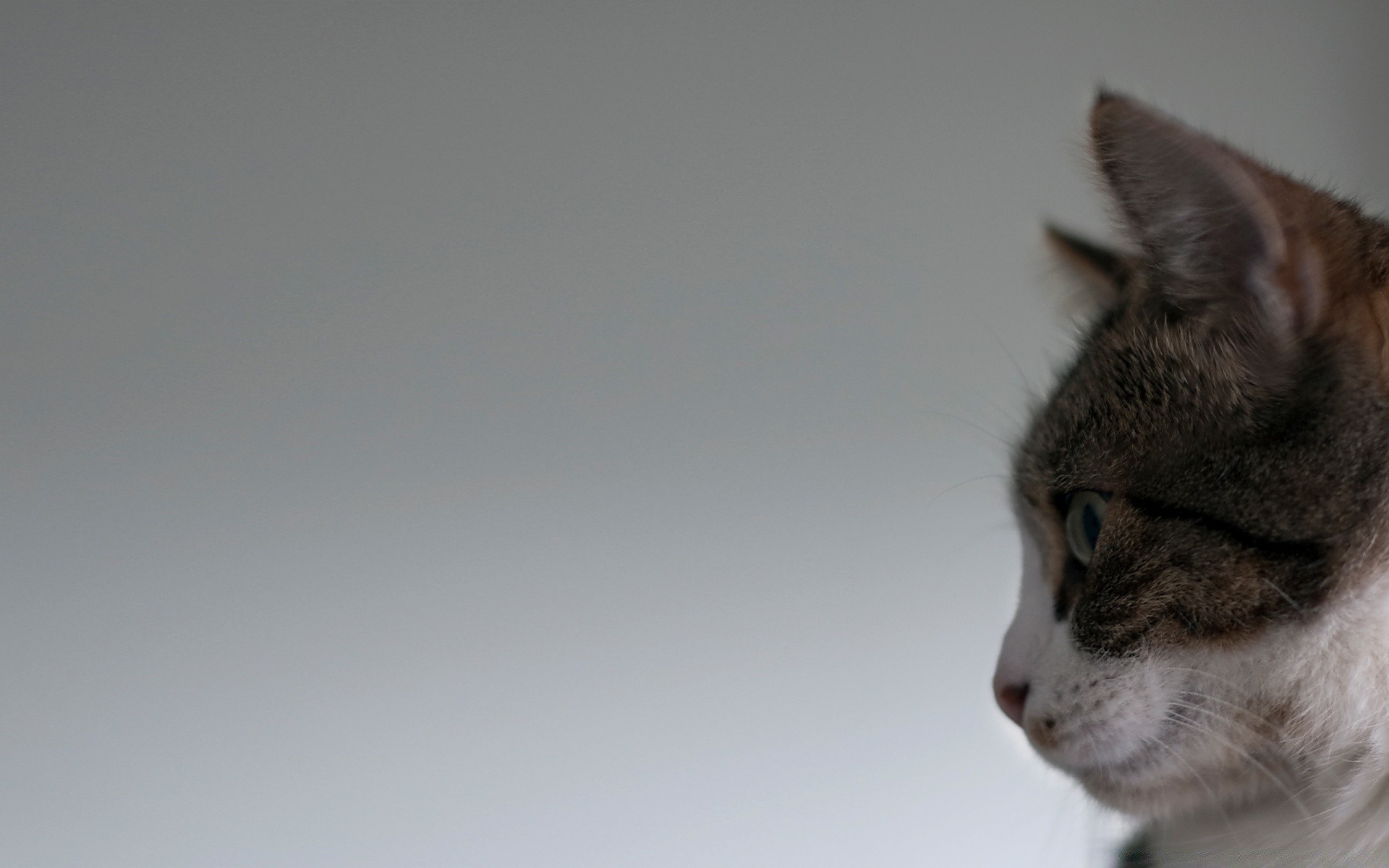 Muso di gatto di profilo su sfondo grigio