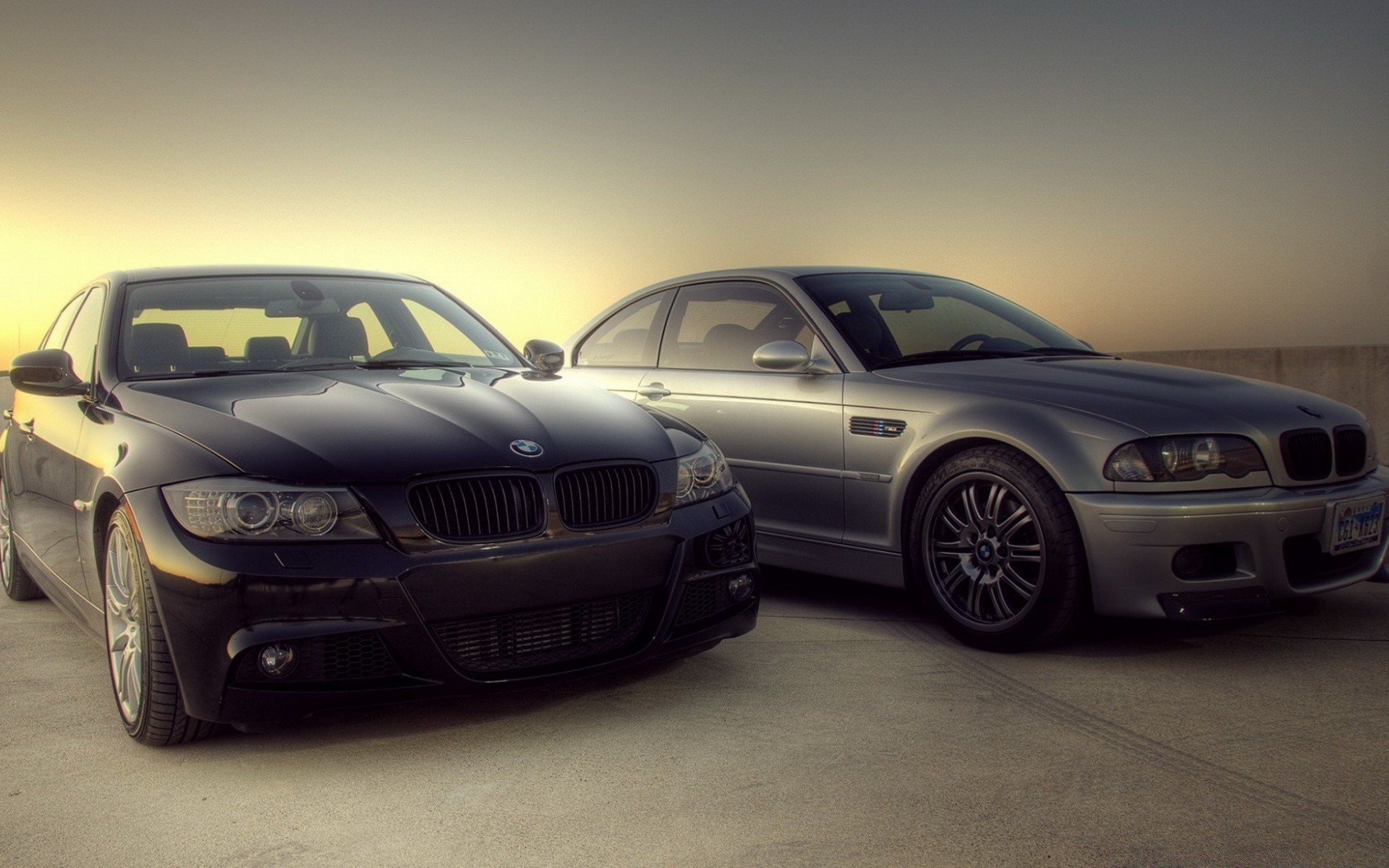 Le auto nere e grigie stanno sull'asfalto grigio