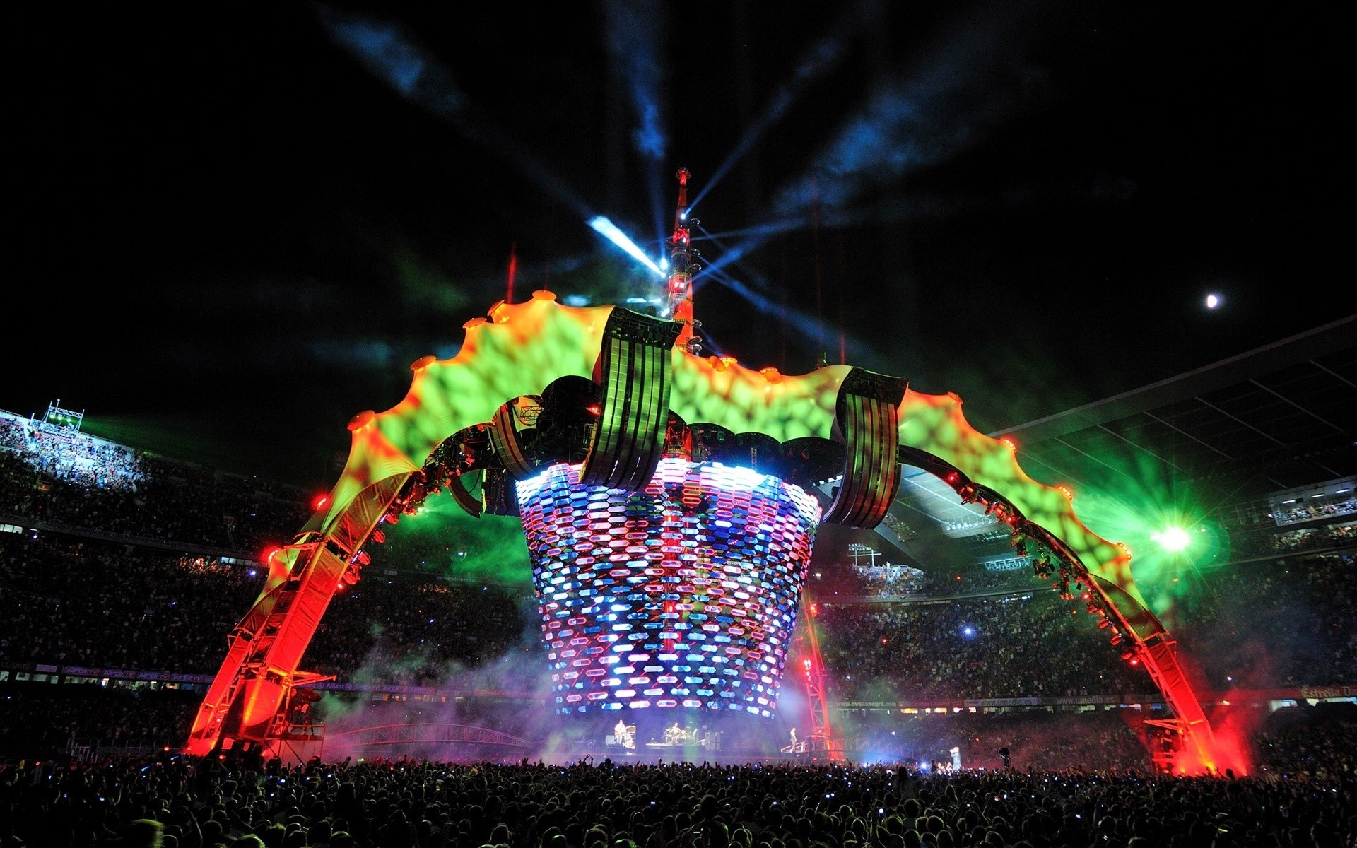 Uno spettacolo al festival musicale, un'arena piena di pubblico, uno scenario enorme sul palco