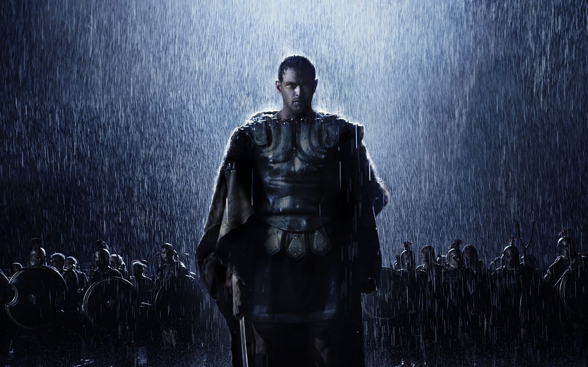Uomo anziano con la barba e giovane uomo e stormi di uccelli volano da dietro