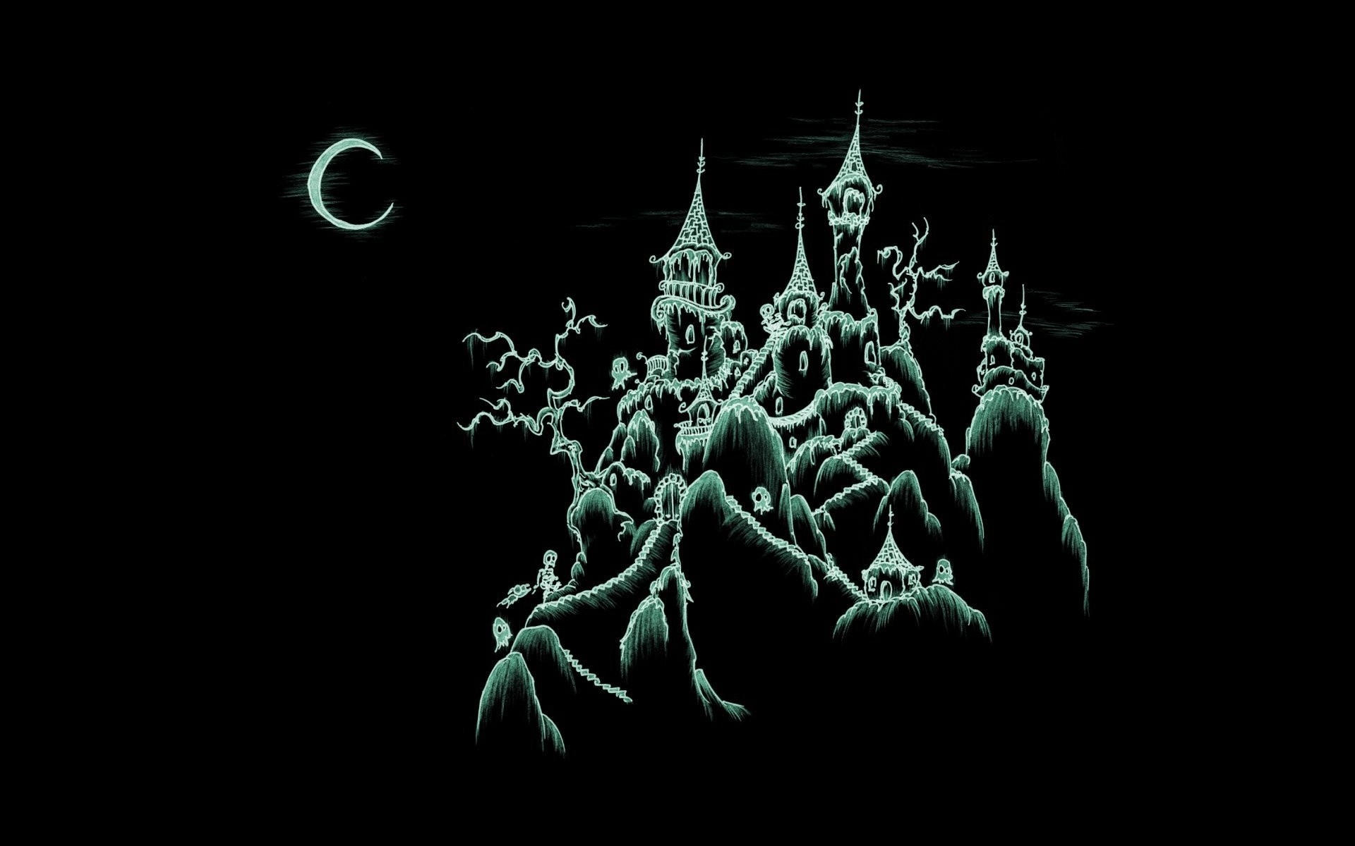Festa di Halloween sullo sfondo di una casa cupa e Luna